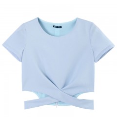 韩都衣舍韩版女装夏装新款纯色镂空露腰短袖T恤OU7163堯 韩版版型 时尚镂空 舒适面料 个性穿搭