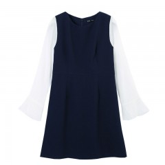韩都衣舍春装新款女装春款拼接喇叭长袖连衣裙中长款时尚韩版 领券立减/单件包邮/七天无理由退换