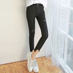 韩都衣舍春季新款不加绒薄款破洞外穿打底裤女九分裤韩版夏季 领券下单立减/单件包邮/先拍先发货!