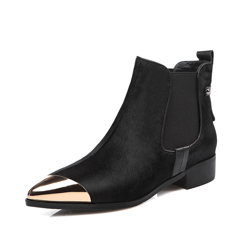 商品名称:秋冬季新款尖头粗跟短靴女高跟真皮加绒中跟马丁靴女靴子女鞋 优质全头层牛皮,品质女鞋